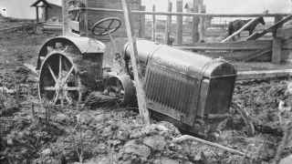 Биробиджан,1930-е годы. Трактор увяз. Трактор подарен ИКОР (Идише колонизация орбайтер,американской Организацией еврейской колонизации в России),много сделавшей в первые годы после создания Еврейской автономной области